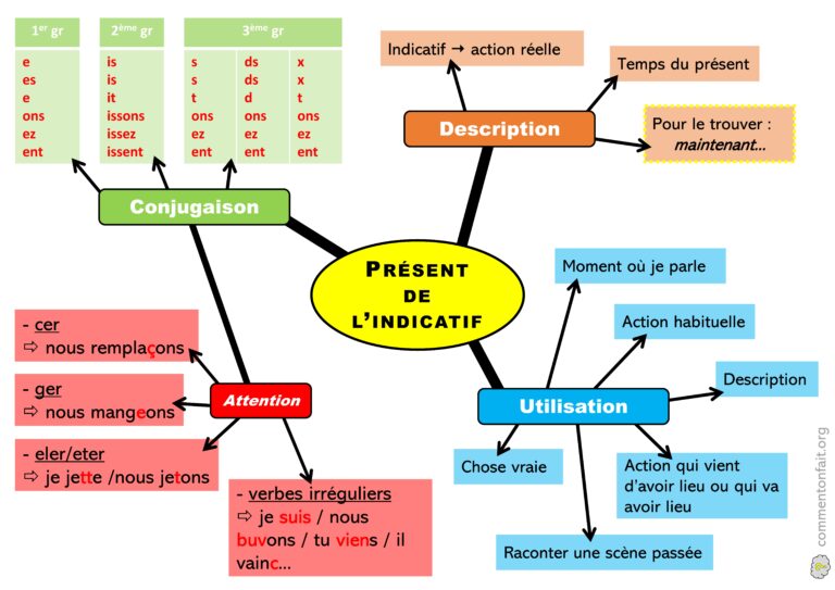 Pour tout retenir en un clin d’œil du présent de l’indicatif, voici une carte mentale !