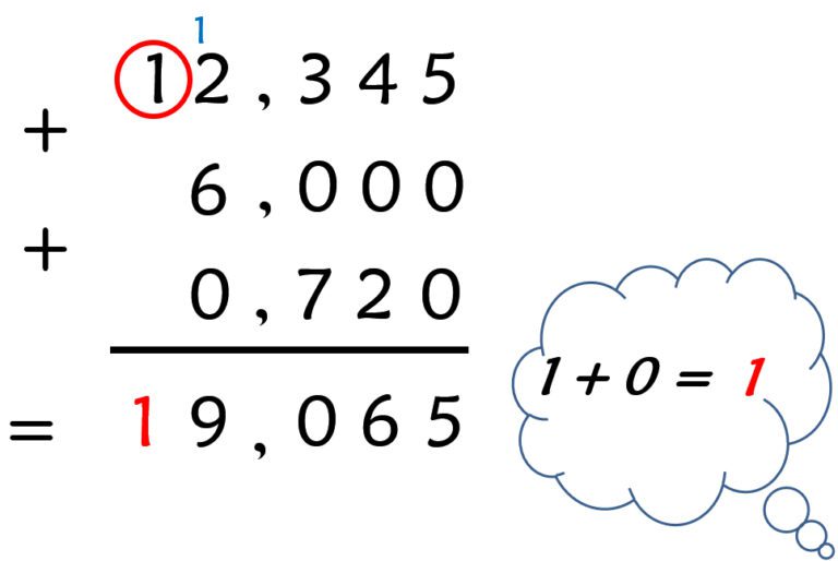 – le 1 en retenue, au-dessus de la colonne des unités.