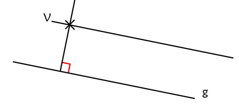 - Avec l’équerre, tracez une perpendiculaire à la droite g, passant par le point V.